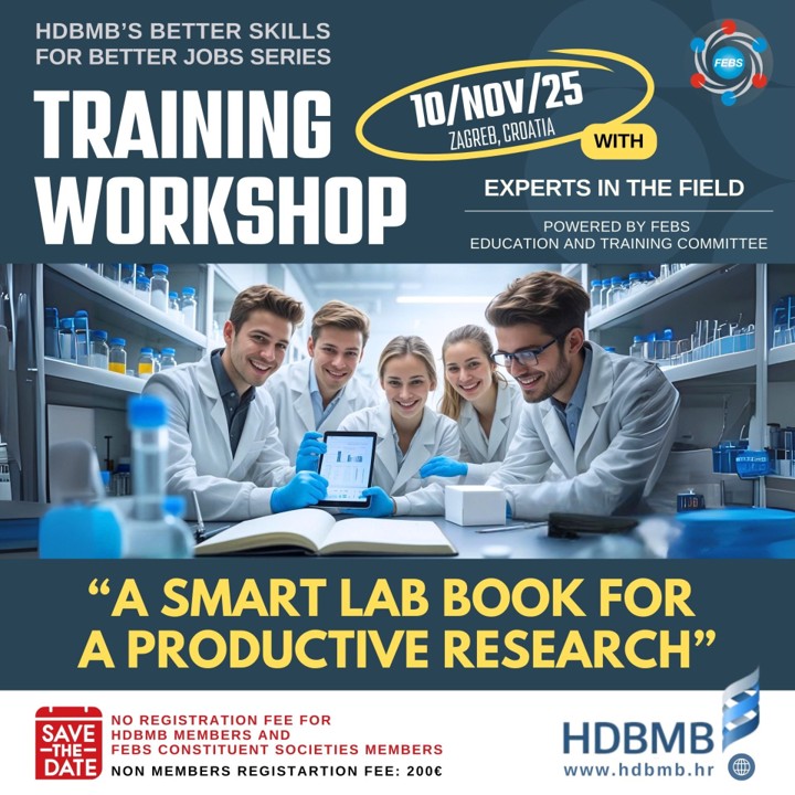 This interactive workshop is organized by the Croatian Society for Biochemistry and Molecular Biology (HDBMB) with the support of the FEBS Education and Training Committee. It is designed for everyone interested in improving their research workflow, with a special focus on young researchers (assistants and senior assistants) eager to strengthen their skills in planning, organizing, and conducting scientific research. Registration is free for SPB members. The number of participants is limited.